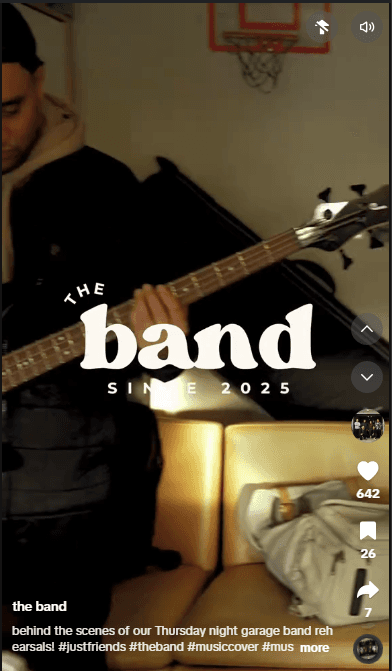 Editor, Videographer, Audio Engineer, part-time Photographer for local cover band 'The Band.'